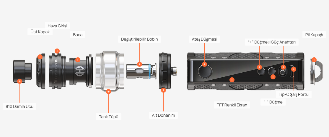 • Ağızlık: 810 değiştirilebilir drip tip