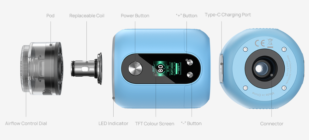 • Güçlü performans: 80W’a kadar ayarlanabilir watt çıkışı ile farklı vaping tercihlerine uyum sağlar.