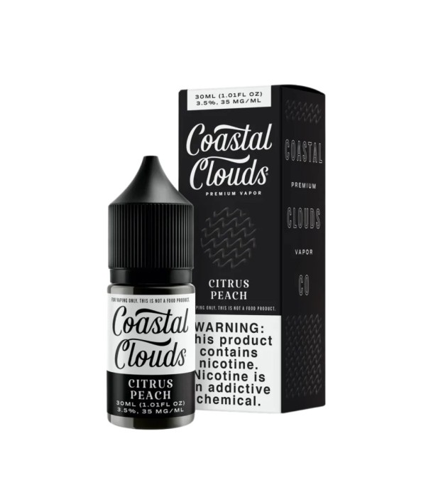 Coastal Clouds Citrus Peach Salt Likit, ferah turunçgil ve yumuşak şeftali aromalarının mükemmel dengesini sunan canlı ve meyvemsi bir elektronik sigara likitidir. 50VG / 50PG oranı sayesinde yumuşak içim ve yoğun aroma dengesi sağlar. 30 mL şişede, 35 mg ve 50 mg nikotin seçenekleriyle sunulur.