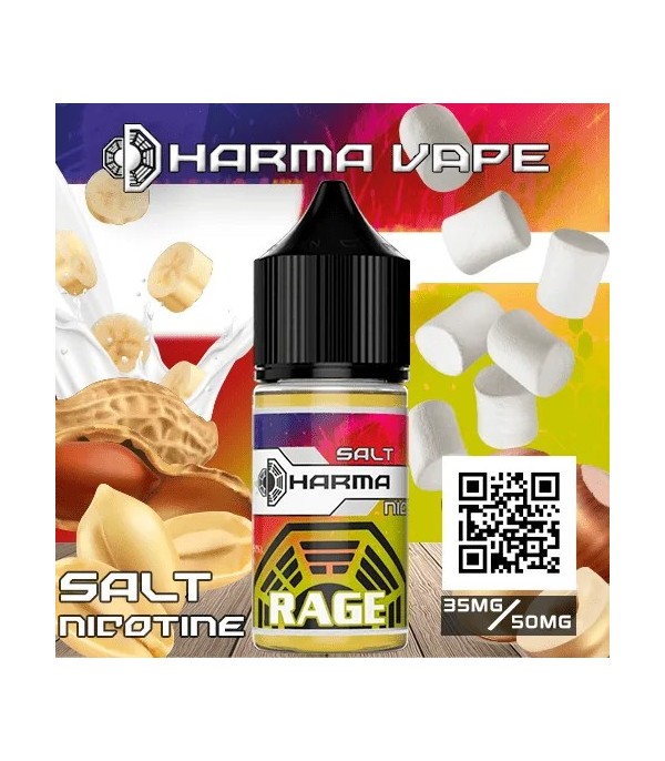 Dharma Rage Salt Likit, fındık, marshmallow, fıstık ve muz kreması aromalarının eşsiz birleşimiyle tatlı ve yumuşak bir vaping deneyimi sunar. 30 ml şişe, 35/50 mg nikotin seçenekleri ve premium formülüyle pod mod cihazlarla mükemmel uyumludur.