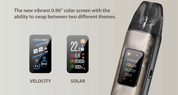 • 0.96” ekran — watt, pil seviyesi ve mod ile ilgili bilgiler net şekilde gösterilir