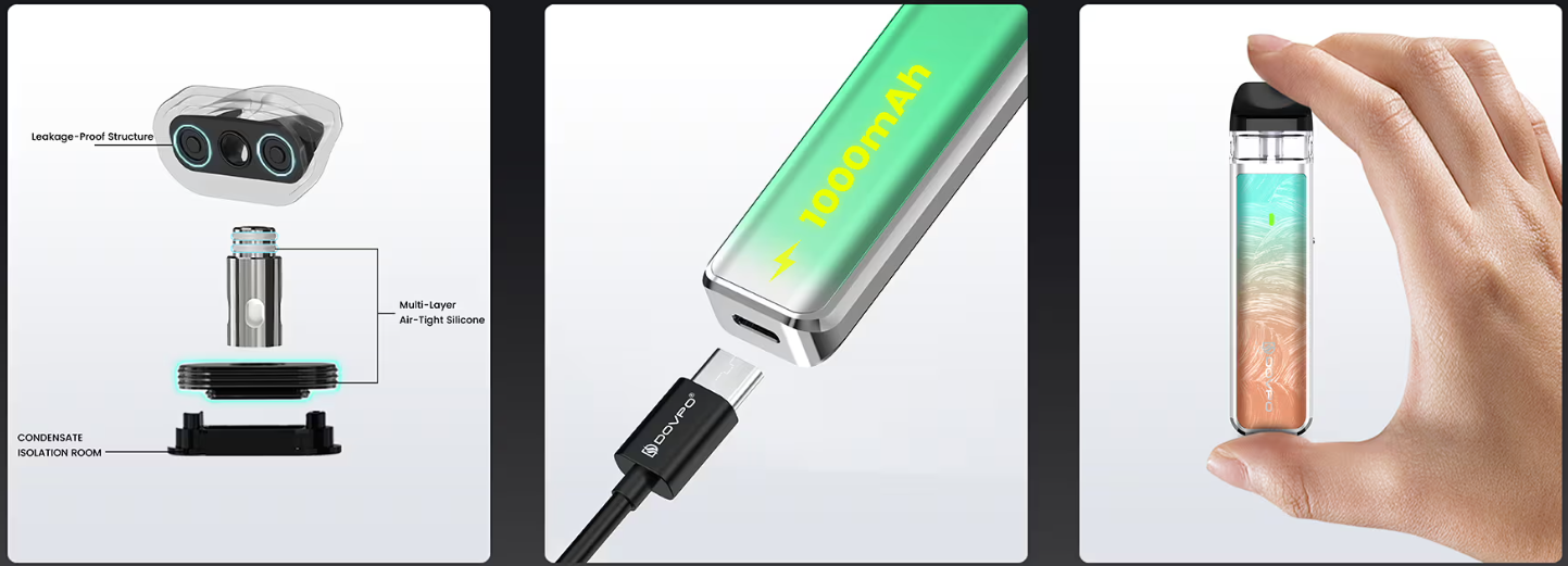 Dovpo Ayce Mini Pod, Ayce serisinin kompakt ve estetik versiyonu olup güçlü performans ve taşınabilirliği bir araya getiriyor. 1000mAh bataryası ile uzun vaping süreleri sunar; 5-25W güç aralığı sayesinde hem aroma odaklı MTL içim hem de RDL stiline uygun kullanımlar sağlar. Zinc alloy ve PC gövde yapısı ile hem dayanıklıdır hem görsel olarak çekicidir. “Triple leak-proof” (üç kat sızdırmaz) tasarımı sayesinde likit dökülmesi ve sızıntıları önemli ölçüde azaltır.