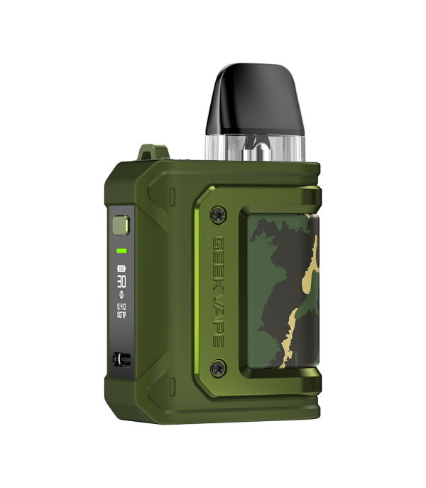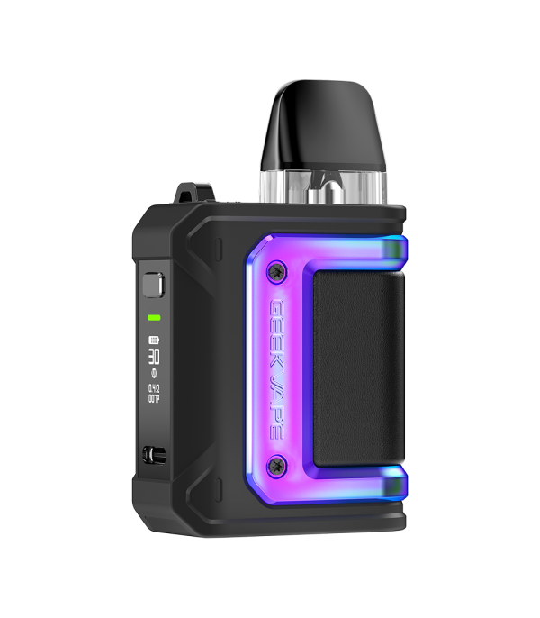 Geekvape AU (Aegis U) Pod Kit, Aegis serisinin ikonik tasarımını miras alarak şık deri ve alüminyum detaylarla tamamlanmış dayanıklı bir pod sistemidir.