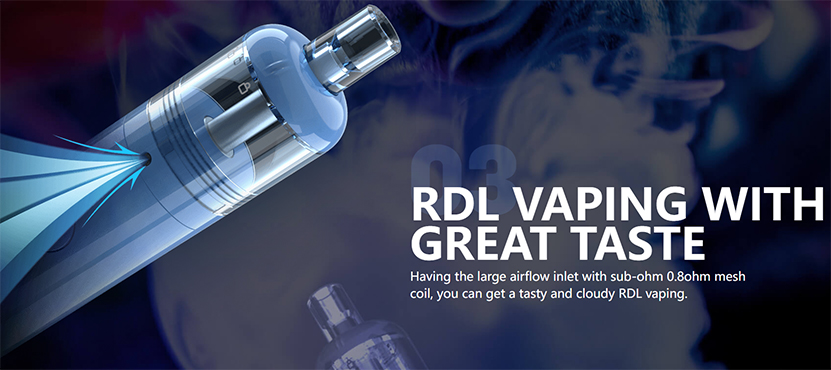 • Dahili 0,8 Ohm örgü bobin, RDL vaping
