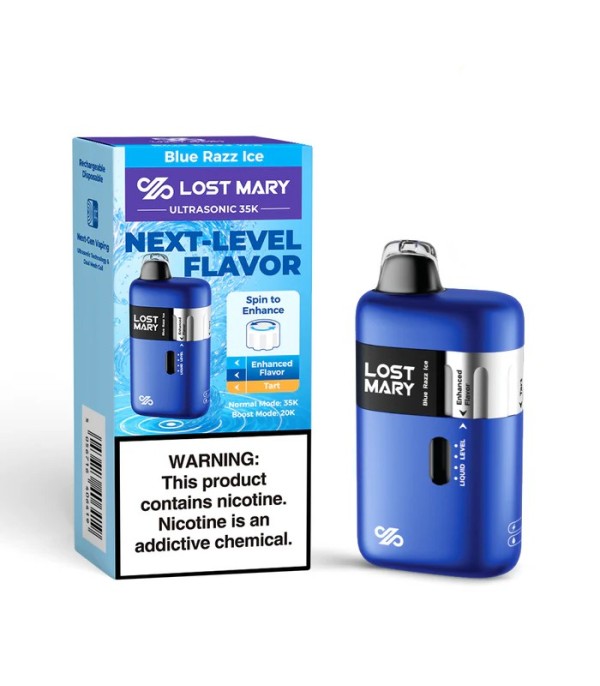 Lost Mary Ultrasonic 35K, yaklaşık 35.000 çekimlik yüksek puff sayısıyla, ultrasonik atomizasyon ve çift mesh coil teknolojisiyle meyvemsi ve buzlu aromaları yoğun ve ferahlatıcı şekilde sunar. 20 ml hazır likit kapasitesi, Normal & Boost mod seçenekleri ve döner tat kontrol özellikleri ile kullanıcıya kişiselleştirilmiş bir deneyim sağlar. Aroma çeşitleri arasında Blue Razz Ice (Mavi Ahududu Buz), Ice Mint (Buz Nane), Strawberry Ice (Çilek Buz), Watermelon Ice (Karpuz Buz) gibi seçenekler bulunur. Tek kullanımlık yapısı sayesinde bakım istemez; pratiktir ve taşınabilir kullanıma uygundur.