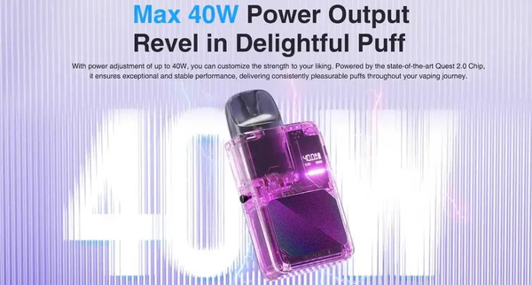 Lost Vape Thelema Elite 40 Art, görselliği güçlü teknolojik özelliklerle birleştiren premium bir pod vape kitidir. Cyberpunk-esintili Art tasarımı ile dikkat çeken cihaz, 1400mAh dahili bataryası ve maksimum 40W çıkışı ile hem aroma hem de buhar isteyen kullanıcılara hitap eder. 0.42 inç OLED ekran, likit haznesinin transparan görünürlüğü, ve Quest 2.0 chipset ile performans ve kontrol bir arada sunulur. 0.3 Ohm ve 0.6 Ohm coil seçenekleriyle birlikte gelen E-Plus pod kartuşlar, MTL (ağızdan-ciğere) ve RDL içim stillerine uygunluk sağlar.