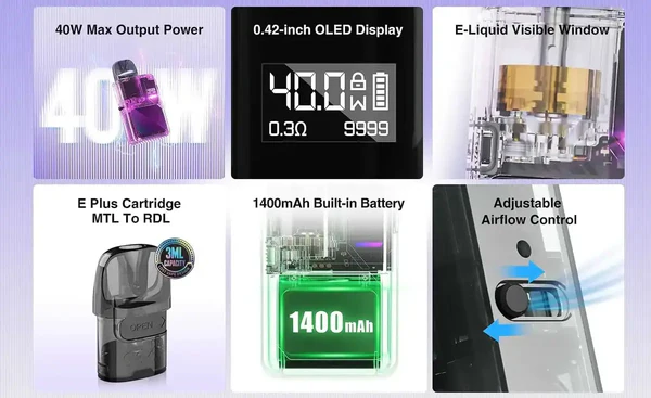 • Maksimum 40W güç çıkışı — RDL tarzı için yeterli buhar ve tat üretimi