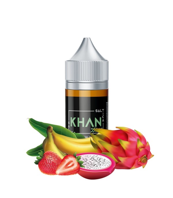 Saltica Khan Salt Likit ile egzotik ejder meyvesi, taze çilek ve lezzetli muzun efsane karışımının keyfini çıkarın. Benzersiz ve doyurucu bir elektronik sigara deneyimi!