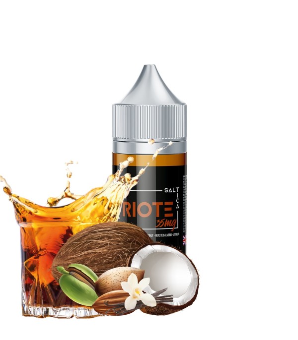 Saltica Riote Salt Likit: Vanilya, badem, kokonat yağı, viski ve şekerleme aromalarının muhteşem kombinasyonu. Elektronik sigara keyfini zirveye taşıyın.