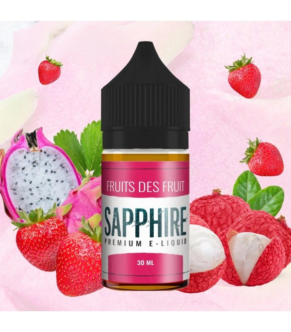 Sapphire Fruits Des Fruit Salt Likit, Sapphire I Love Salts serisinin bir parçası olup, tatlı çilek, dragon meyvesi ve lychee (ejder meyvesi) aromalarının mükemmel birleşimiyle tropikal bir lezzet deneyimi sunar. Nikotin tuzu teknolojisi sayesinde pürüzsüz bir içim deneyimi ve tatmin edici nikotin hissi sağlar.