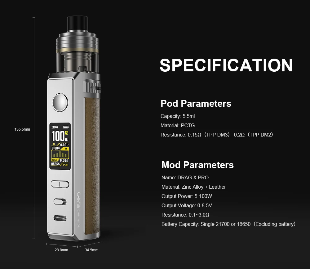 Drag X Pro Kit, Drag Serisinden ilham almıştır. VOOPOO Drag X Pro Kit, görünümünden yapısına kadar her ayrıntıyı en uç noktalara kadar parlatıyor. VOOPOO Drag X Pro Kit, yükseltilmiş GENE.FAN 3.0 çipini benimser; patlayıcı güç, istikrarlı ve zengin akıllı işlevler sağlar. Otomatik/Manuel mod ve geçiş anahtarı (Açma/Kapama düğmesi) ile en üst performansı hissedebilirsiniz. Drag X Pro, her birini tatmin edecek şekilde Akıllı/RBA/TC modlarını destekler.